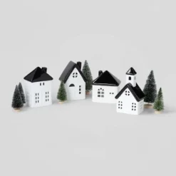 10pc Battery Operated Decorative Ceramic Village Kit White/Black With Green Trees – Wondershop™