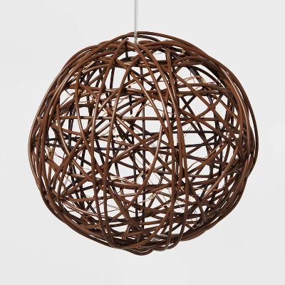 Battery Operated Brown Faux Rattan Sphere Fairy String Lights Warm White With Brown Wire – Wondershop™